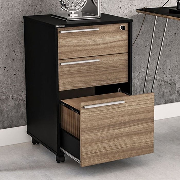 Gaveteiro Arquivo com Rodízios Maia 3 Gavetas com Chave Preto/Castanho - Politorno Preto/Castanho