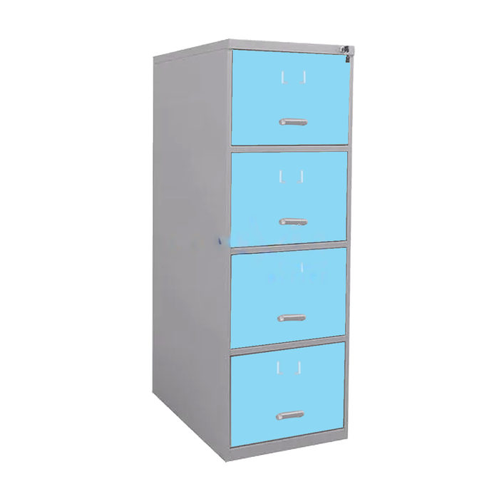 Gaveteiro Arquivo De Aço 4 Gavetas P/ Pasta Suspensa C/ Chave Azul Claro Corpo Cinza / Gavetas Azul Claro