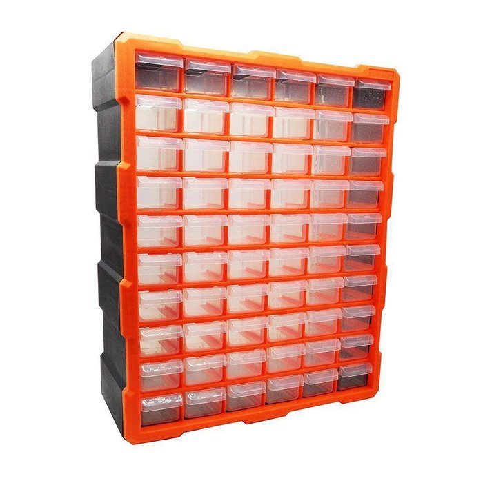 Gaveteiro Organizador Multiuso 60 Gavetas 120 Divisorias Descrição Os gaveteiros são ideais para organizar seus produtos de forma simples, prática e funcional. Com um layout moderno, pode ser utilizado em seu escritório, casa, almoxarifado ou qualquer outro ambiente, colocando tudo em ordem! em Poliestireno (PS), uma resina plástica nobre e que garante maior qualidade e durabilidade,pode armazenar diversos materiais como porcas, parafusos, circuitos eletrônicos, miudezas em geral. gaveta vem dividida em dois espaços internos graças ao seu sistema de divisórias. Possui batentes que impedem a queda das Possui espaço para uso de etiquetas de identificação. Ecologicamente corretos, os gaveteiros são recicláveis. Especificações Técnicas - Gavetas: 60 - Material: Poliestireno de alto impacto - Dimensões da base: 47 x 35 x 15 cm (AxLxP)-aproximado - Dimensões das gavetas: 4x 5x 15 cm (AxLxP);-aproximado - Moderno e prático - Batentes internos ajudam a evitar quedas das gavetas - Melhor aproveitamento dos espaços internos - Ótima qualidade e excelente preço - Confeccionado em resina virgem - Pode ser fixado na parede - Divisão removível dentro de cada gavetinha