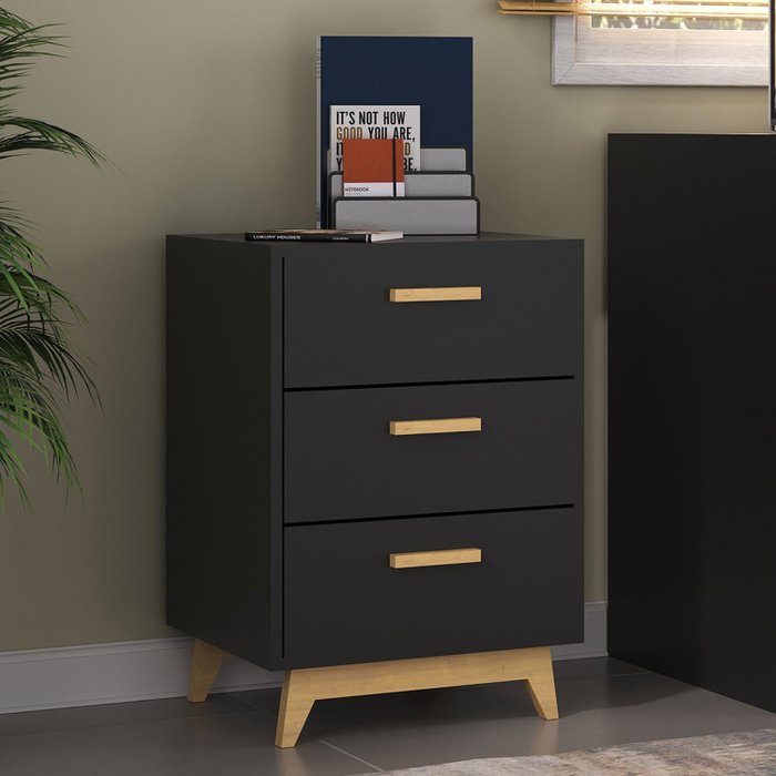 Gaveteiro com 03 Gavetas Nature Preto TX