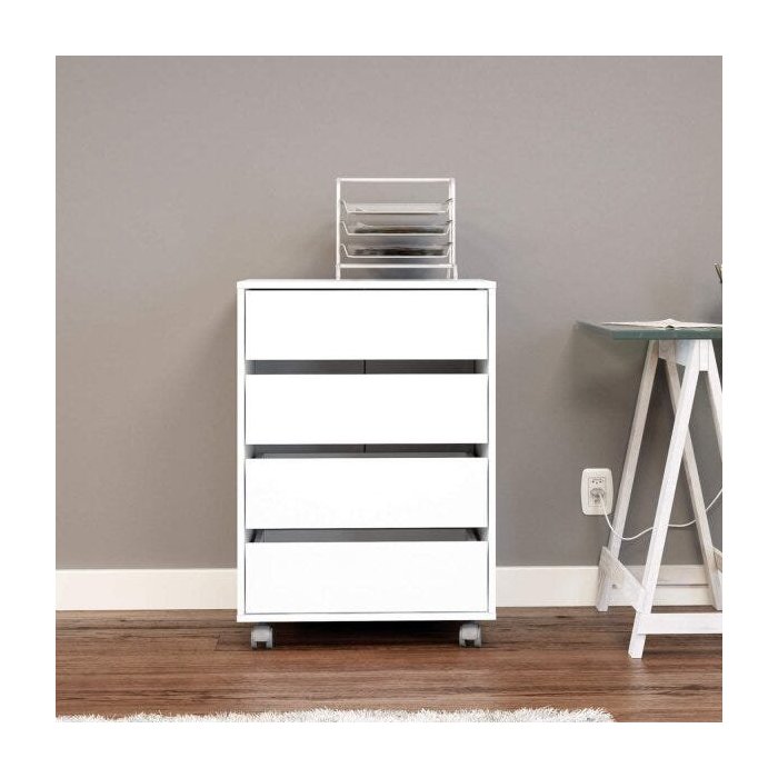 Gaveteiro com 4 Gavetas Mauá Politorno branco com detalhes em preto