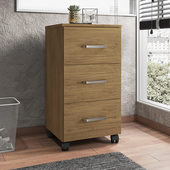 Gaveteiro com Rodízios 3 Gavetas Pietra Espresso Móveis Freijó/Amarelo Trama