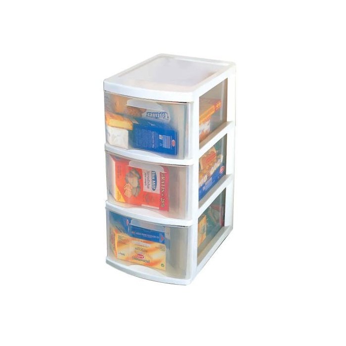 A vantagem do gaveteiro de plástico ou material transparente é que você consegue visualizar os itens sem precisar abrir as gavetas.