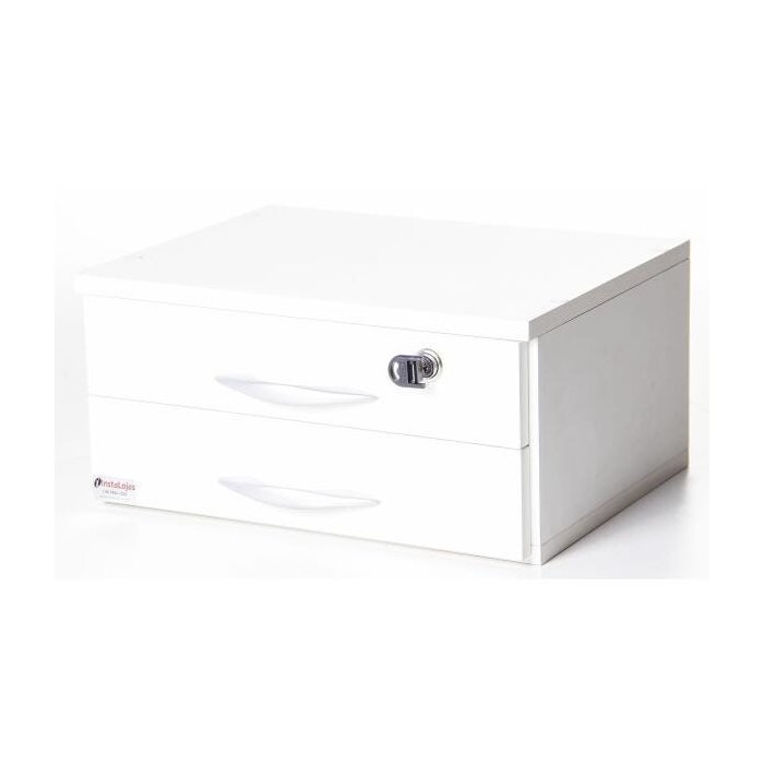 Compacto e muito útil, com duas gavetas, uma pode ser utilizada para caixa (contém separador de cédulas e moedas) e outra para guardar documentos