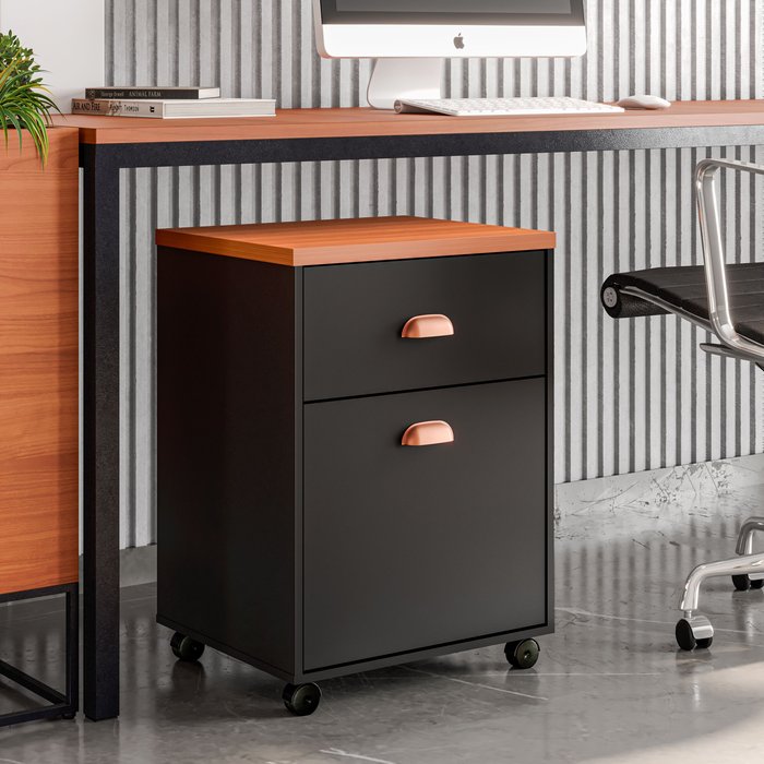 Gaveteiro Escritório 2 Gavetas com Rodinhas Faria Lima Preto