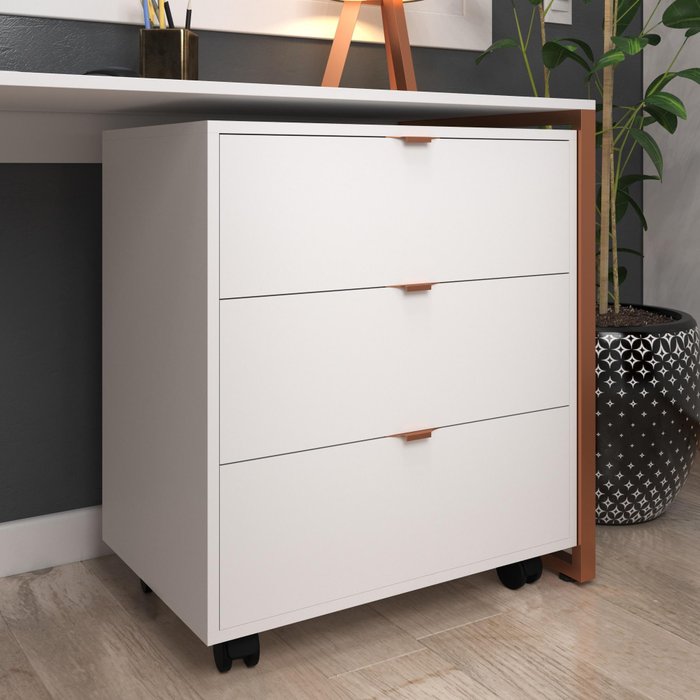 Gaveteiro Escritório 3 Gavetas Rodízio Mileto Branco Cobre