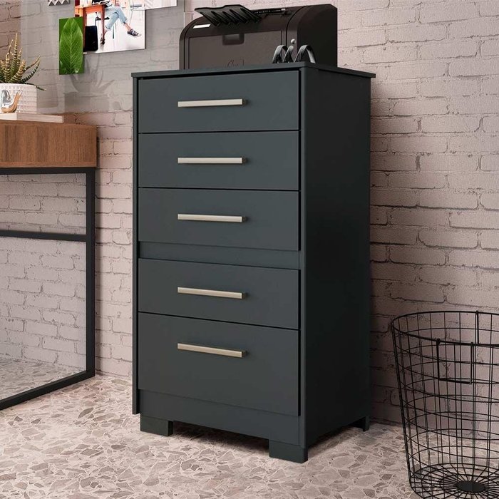 Gaveteiro Escritório 5 Gavetas Preto Fosco Pompeia Shop JM