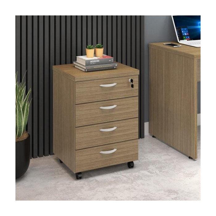 Gaveteiro Escritório Home Office 4 Gavetas Marrom Madeira