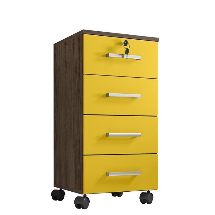 Gaveteiro Gávea Flex 4 Gavetas Avelã/Amarelo - PR Móveis