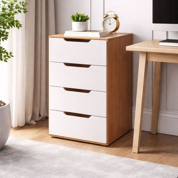 Gaveteiro Madri 4 Gavetas Branco/freijó - Politorno Bege Claro