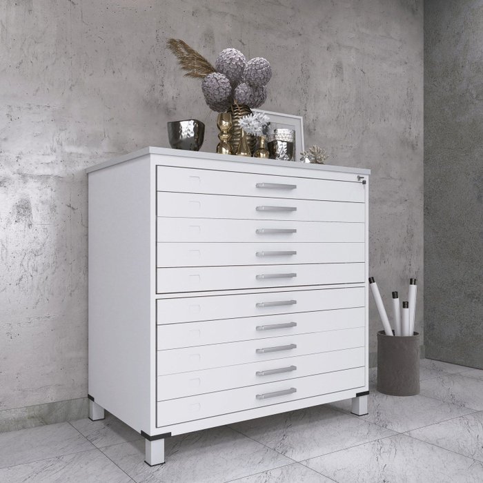 Gaveteiro Mapoteca para Escritório de Aço Fixa com 10 Gavetas Industrial Branco