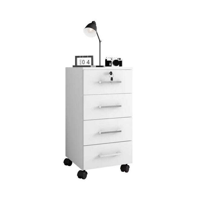Gaveteiro Organizador Maya com 4 Gavetas Rodízios e Chave Branco para Escritório Consultório Quarto