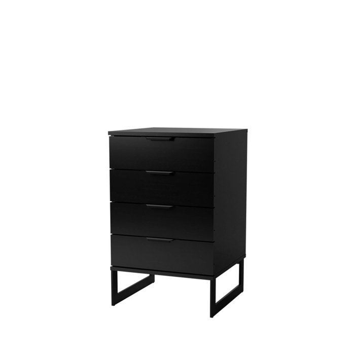 Ficha técnica:-Gaveteiro produzido em MDP e fundo em MDF;-Base em metal com pintura eletrostática na cor preto fosco;-Acabamento em primer e verniz UV ultra fosco;-Possui 4 gavetas;-Suporta até 20 kg.Medidas:
