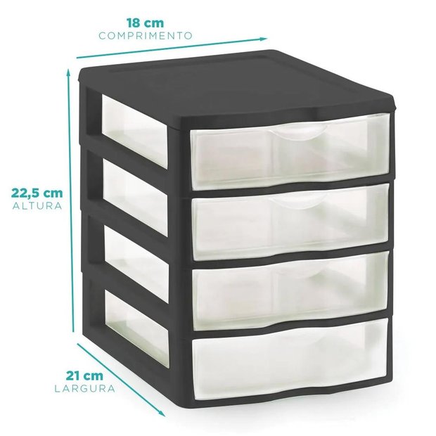 Conteúdo da Embalagem: 01 un. Gaveteiro Pequeno com 4 Gavetas