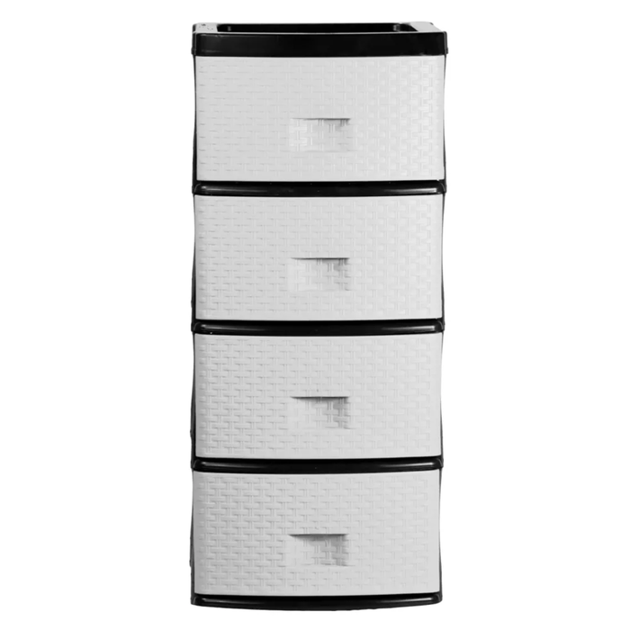 Gaveteiro Plástico Organizador com Rodizio 4 Gavetas Ratan Branco