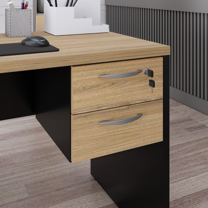 Gaveteiro Suspenso para Escritório 2 Gavetas com Chave Amadeirado/Preto