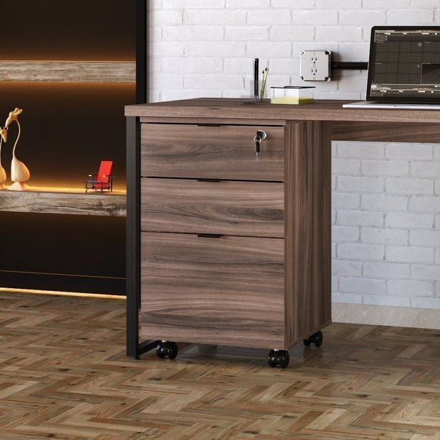 Gaveteiro Volante 2 Gavetas e 1 Gaveta para Pastas Kugv43 Kuadra Yescasa Nogal/Preto Ônix