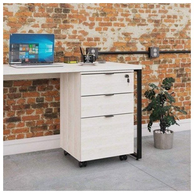 O gaveteiro volante KUGV43 tem um design diferenciado, possui 03 gavetas sendo 01 com chave além dos puxadores de metal e rodízios. Pode ser utilizado em diversas composições com outros móveis, sendo perfeito para fazer parte do seu escritório ou sala. A linha Kuadra tem seu design com inspiração no estilo industrial, que remete muito a decoração usada nos lofts das grandes metrópoles nos anos 60 e 70. Harmonizando o metal e os tons de madeira, foram projetados móveis versáteis e com estilo, que podem compor ambientes flexíveis cheios de personalidade, perfeitos para você decorar sua casa ou seu trabalho, tendo um resultado que caminha do estilo rústico ao moderno. Suas estruturas são fabricadas em aço, com soldas suavizadas e pintura texturizada epóxi-pó, conta com pés niveladores de altura e parafusos na cor preta. Para os tampos são utilizados mdp-bp acetinado com fitas de borda em pvc, dando uma maior durabilidade ao seu móvel.