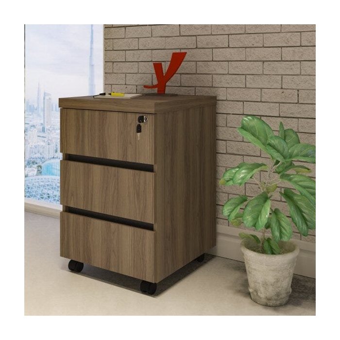 Gaveteiro Volante 3 Gavetas com Chave em Tamburato Artany Nogal/Preto