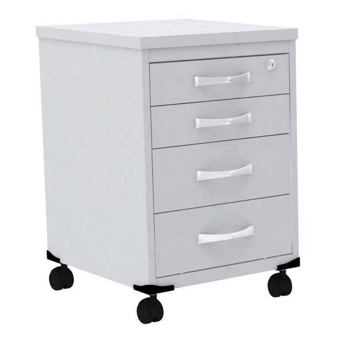 Gaveteiro Volante 4 Gavetas Pandin com Chaves Tampo e Frente Gavetas Mdp Branco Estrutura Aço Branco