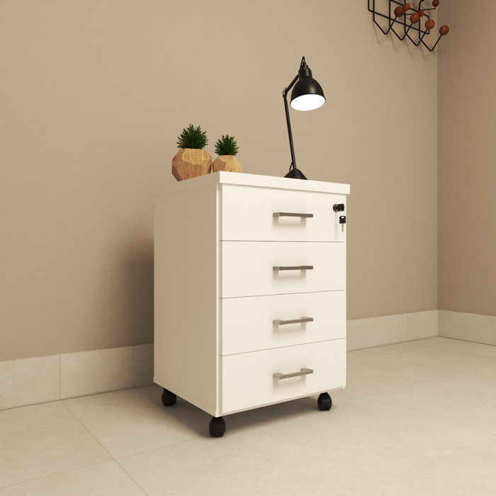 Gaveteiro Volante com 4 Gavetas para Escritório ou Home Office Preto/Branco