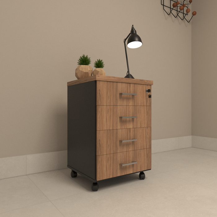 Gaveteiro Volante com 4 Gavetas para Escritório ou Home Office Preto/Carvalho Mel