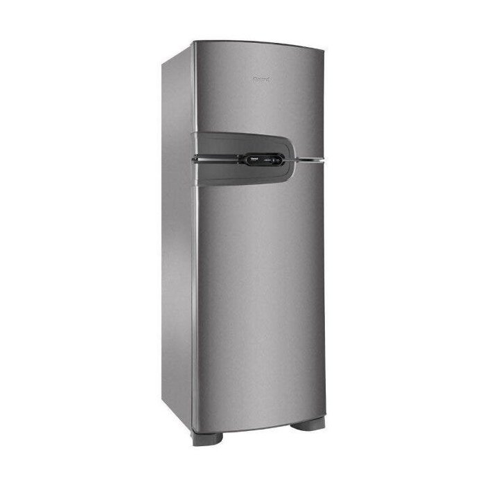 Esta é a geladeira de duas portas, uma porta para o freezer e outra para o refrigerador. O fato de ter duas portas traz praticidade: se quiser um item que está no congelador, não há a necessidade de abrir a porta do refrigerador, e vice e versa.