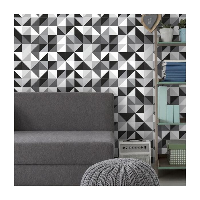 Geométrico Preto e Branco - Papel de Parede - 0,58 x 2,50m