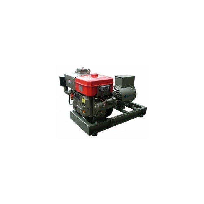 GRUPO GERADOR YANMAR YTGD075ME 7.5 KVA 110/220V Referência: YTGD075ME.A0010 Modelo: YTGD075ME Uso: Profissional Marca:YANMAR País de origem: BRASIL Potência: 6 KVA / 7.5 KVA Voltagem: 110/220V Acionamento: Diesel Tanque de Combustível: 10,5 Litros Dimensões CxLxA: 125x100x100 cm Peso: 320 Kg Notas:Diesel , motor Yanmar modelo YT18E , refrigerado a água por termo-sifão , partida elétrica e manivela , monofásico , alternador auto regulado tipo compound , acoplamento direto por luva elástica , bateria e cabos opcionais , 280kg