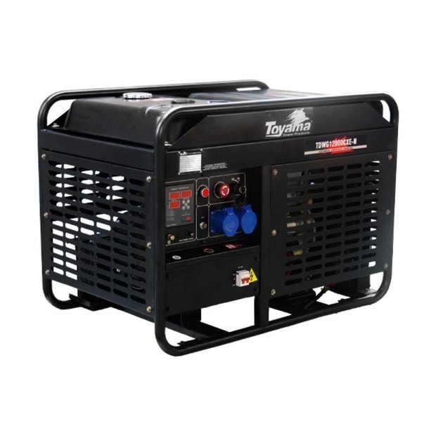 Código:254-006Marca:ToyamaO Grupo Gerador Aberto Toyama TDWG12000CXE-N, foi desenvolvido para o uso frequente. É equipado com motor a Diesel de 19,4 HP de potência máxima, 2 cilindros, V-Twin, aspirado, 3600 RPM e refrigerado a água através de radiador.Possui alternador síncrono, monofásico, 2 polos, com 10 kVA de potência máxima, excitatriz rotativa por escovas, dotado de regulador eletrônico automático de tensão (AVR).Dispositivos de proteções contra alta temperatura da água e baixa pressão do óleo equipam o conjunto.É fácil de movimentar, operar e realizar as manutenções periódicas.Atende as demandas frequentes, sendo indicado para diversas aplicações como: construção civil, pequenos comércios, residências ou em quaisquer situações que exijam a necessidade do fornecimento de energia elétrica, com acionamento manual ou automático (requer instalação de painel ats – vendido separadamente). Garante performance diferenciada, eficiência e confiabilidade. Especificações Técnicas Combustível: Diesel Refrigeração: Água Cilindros: 2 Cilindros Tipo do Motor: 4 Tempos Sistema de Partida: Elétrica Cilindrada: 794 cc Rotação Máxima: 3600 RPM Capacidade do Tanque: 26 l Capacidade do Óleo: 2,27 l Potência Máxima: 10 kVA Potência Nominal: 9 kVA Número de Fases: Monofásico Tensão Principal: 110 V | 220 V Frequência: 60 Hz Fator de Potência: 1 cos Tomadas Principais: 2 x 220 V Carregador de Bateria 12VDC 8A Capacidade do Radiador: 3,5 l Corrente Nominal: 81,8 A | 41 A Grau de Proteção: IP21 Característica Adicional: Com AVR Com Controlador SmartGen HGM501 NA