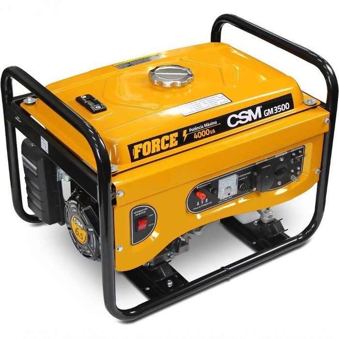 <h2>Gerador Portátil Gm 3500 127/220 Csm</h2><br><p>Os Geradores Portáteis 4 Tempos da CSM são fabricados seguindo os mais altos padrões internacionais, garantindo alta eficiência e baixo consumo de combustível. Com uma alça retrátil para facilitar o transporte, eles são ideais para fornecer energia elétrica em qualquer lugar. O alternador, totalmente fabricado em cobre, assegura um desempenho confiável do equipamento. O acionamento é fácil, com partida retrátil reforçada em qualquer temperatura, permitindo uso contínuo. O gerador possui um regulador de tensão AVR e um horímetro para um maior controle por parte do operador.<p><p>As rodas de borracha maciças são resistentes e garantem uma operação suave e fácil movimentação do equipamento. Além de sua durabilidade excepcional, esses geradores têm baixo custo de manutenção e apresentam um design premium. Adquira agora o seu Gerador Portátil 4 Tempos da CSM e tenha a garantia de uma solução confiável e eficaz para suas necessidades de energia elétrica.<p><p>Potência do motor (LIFAN) 6,5Hp<p><p>Potência máxima (kVA) 4<p><p>Potência nominal (kVA) 3,5<p><p>Voltagem (V) 127/220<p><p>Tensão Monofásico<p><p>Sistema de partida Retrátil<p><p>Capacidade do tanque (L) 15<p><p>Autonomia aproximada (h) 12<p><p>Consumo de combustível (L/h) 1,25<p><p>Ruído a 7 metros (dB) ≤ 67<p><p>Regulador auto. voltagem AVR<p><p>Código fornecedor 40144402<p><p>Marca CSM<p><p><p> NA