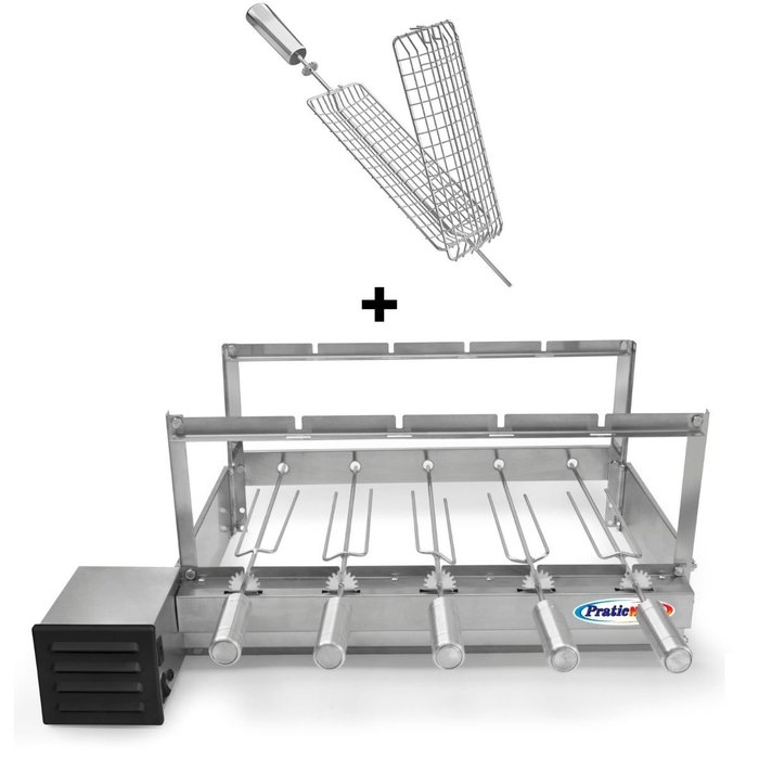 Gira Grill Inox c/ 5 Espetos Tridente + Espeto Grelha Pratic Inox