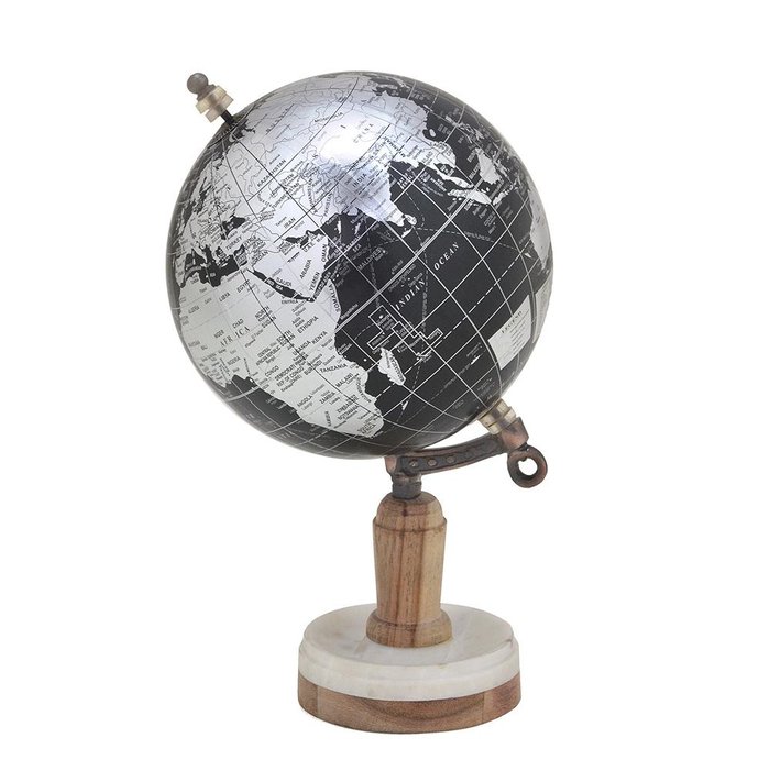 Globo Decorativo Preto e Prata com Pedestal Madeira e Pedra