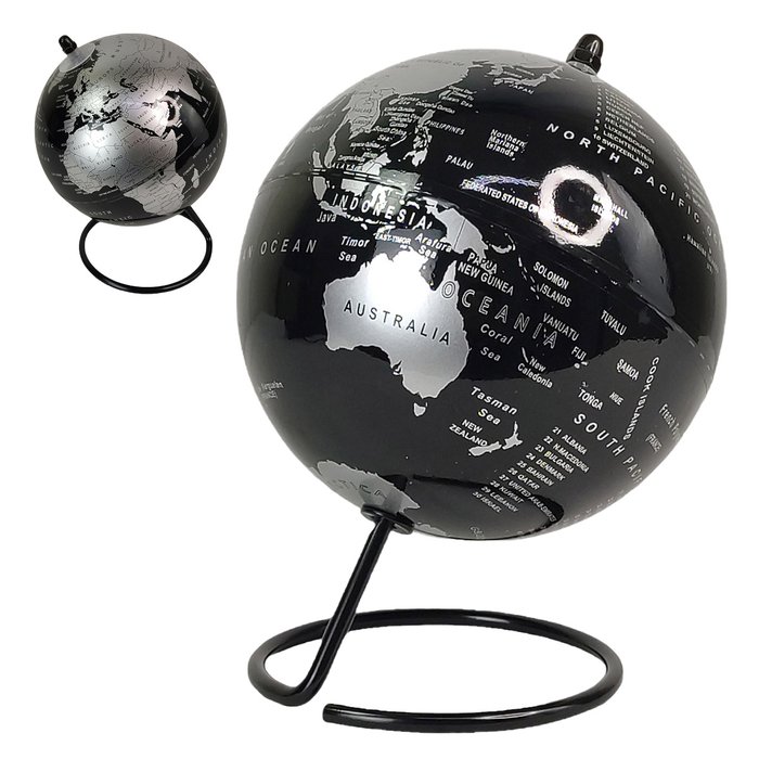 Globo Terrestre Giratorio Mapa Mundi Mesa Decoraçao Esfera Mundial Sala de Aula Estudo Geografia Via Preto e Prata