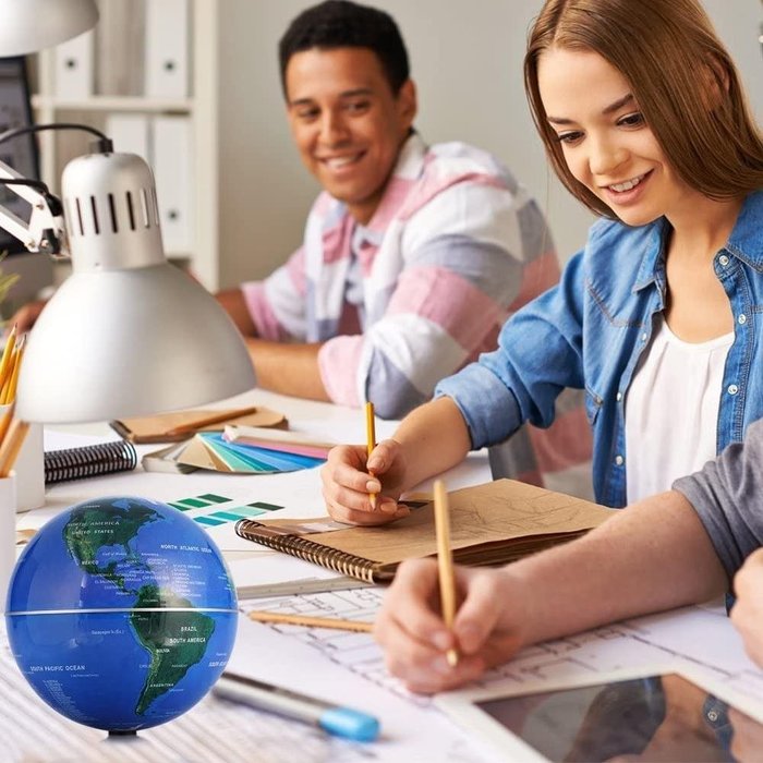 Um belo ponto de conversa em casa. Este globo giratório mágico não é apenas uma ótima peça ornamental para ter em sua casa, é também um pequeno auxiliar educacional para quando você não consegue se lembrar onde fica a Patagônia. Basta colocar uma pilha AA, colocá-la em uma superfície plana e vê-la girar em silêncio, hipnoticamente em seu eixo. Tudo o que você precisa fazer para fazê-lo mudar de direção é dar um leve empurrão no topo enquanto ele está girando e ele seguirá de outra maneira.