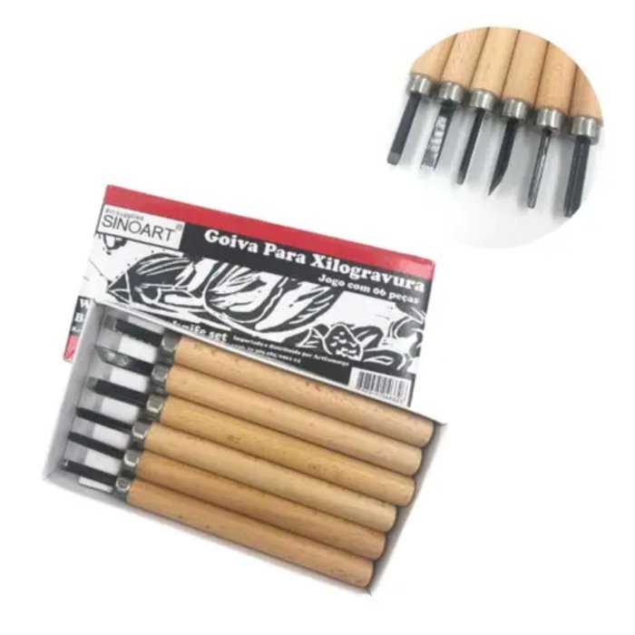 A xilogravura é uma técnica milenar que permite transformar simples pedaços de madeira em verdadeiras obras de arte. Com nosso jogo de goivas de 06 peças, você terá todas as ferramentas necessárias para explorar essa arte incrível.