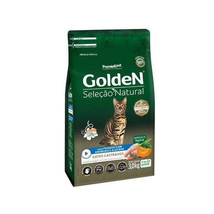 Golden Gatos Seleção Natural Castrados Frango Abóbora 3Kg