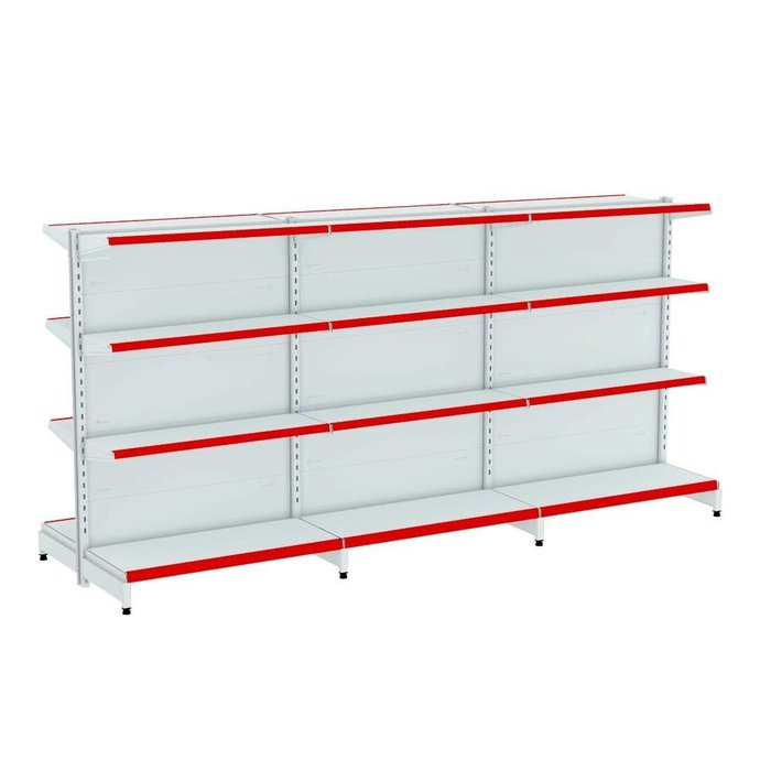 A Gôndola Premium Flex 40 Centro é ideal para farmácia, supermercados, mercearias, lojas de utilidades, materiais de construção, agropecuárias e outros. Devido sua altura permite uma visão ampla central do comércio.