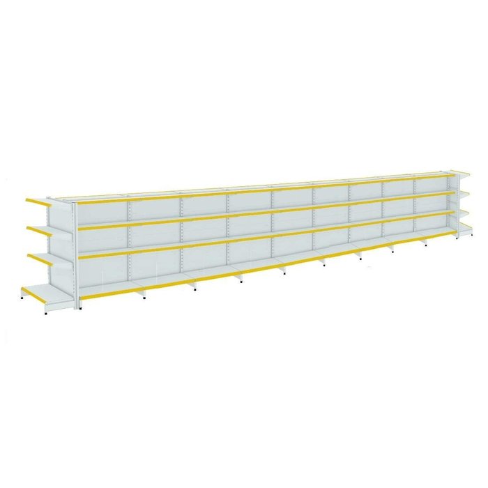GONDOLA CENTRO 142 AMAPÁ FLEX KIT 9 METROS COM 2 PONTA 40/30 BRANCO PORTA ETIQUETA AMARELO