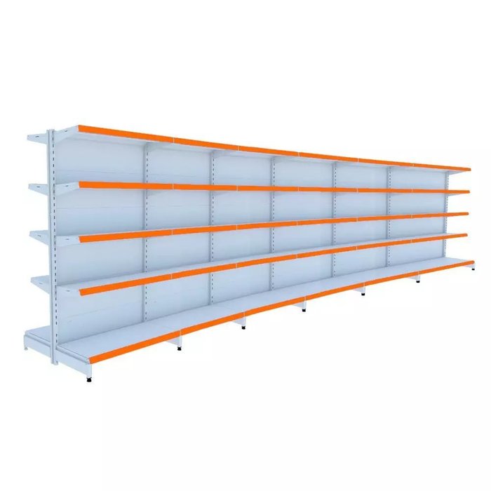 Gondola Centro 170 Fit Ate 6 Metros Branco 60 Bandeja Pe Laranja Branco