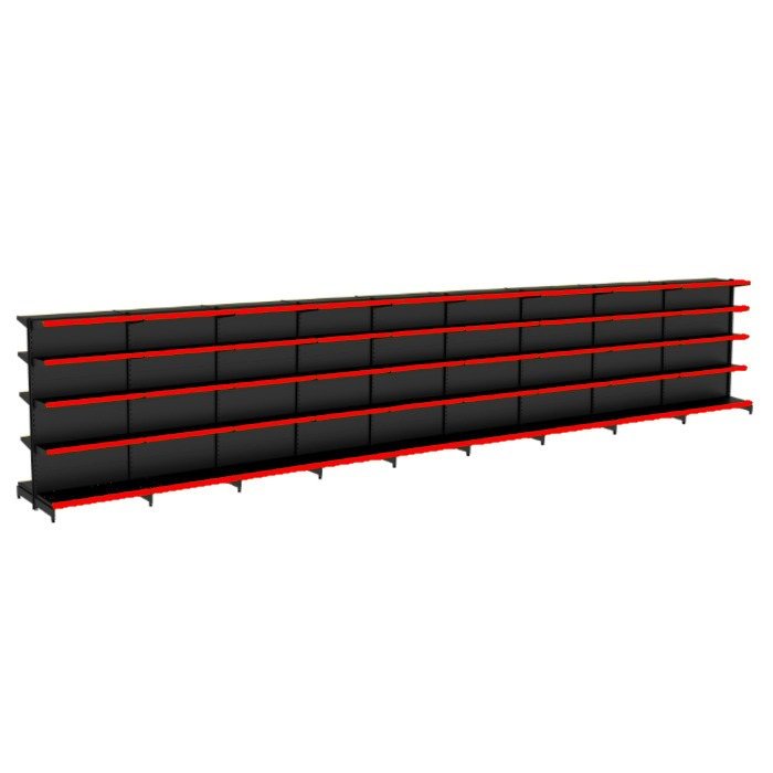 Gondola Centro 170 Fit Ate 9 Metros Preto 90 Bandeja Pe Vermelho Preto