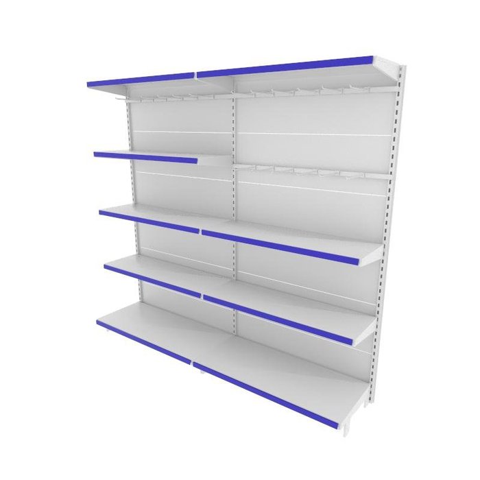 Gondola de aço Altura 170 cm Parede Bandejas 40/30 e Ganchos Branco gp170braz114