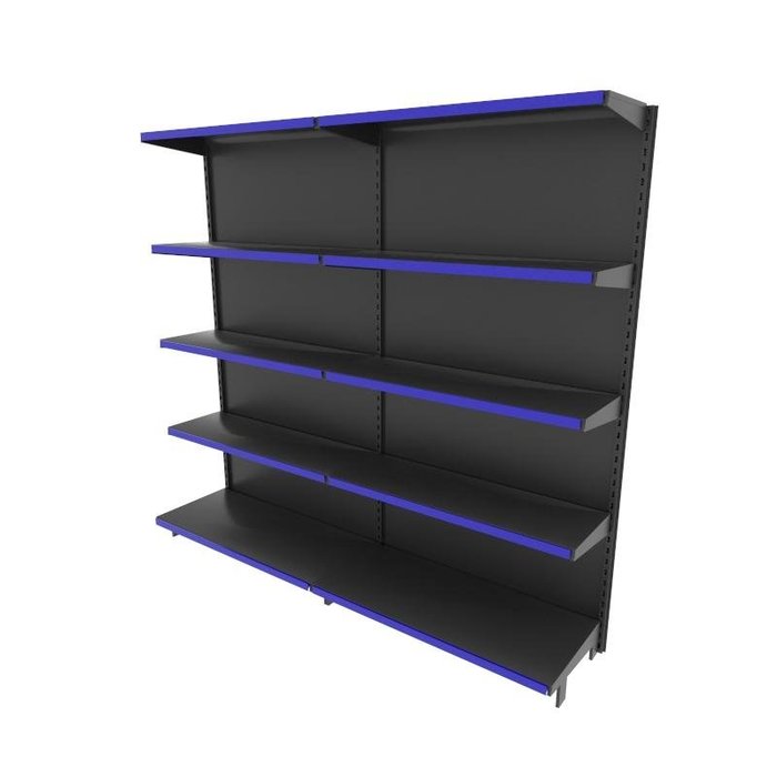Gondola de aço Altura 170 cm Parede Base 40 e Bandeja 30 Preto gp170praz27