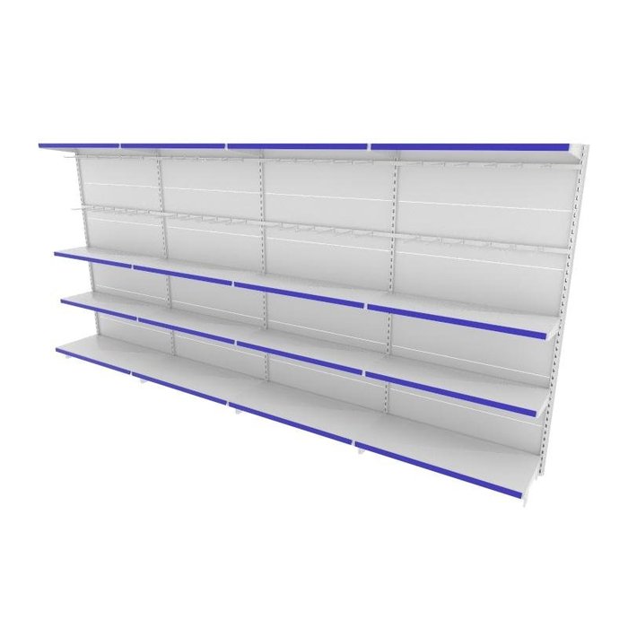 Gondola de aço Altura 196 cm Parede Bandejas 40/30 com Ganchos Branco gp196braz744