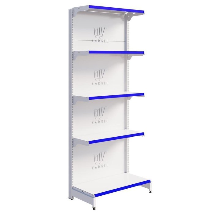Peso Suportado por cada Bandeja: 40 kg Largura: 84 cm | Quantidade de prateleiras: 5 | Profundidade: 40 cm | Tipo de gôndola: Centro | Peso máximo suportado: 40 kg | Altura: 1,70 | Material: Aço | Peso: N/A | Requer montagem: Sim Cor: Branco Perfil Azul