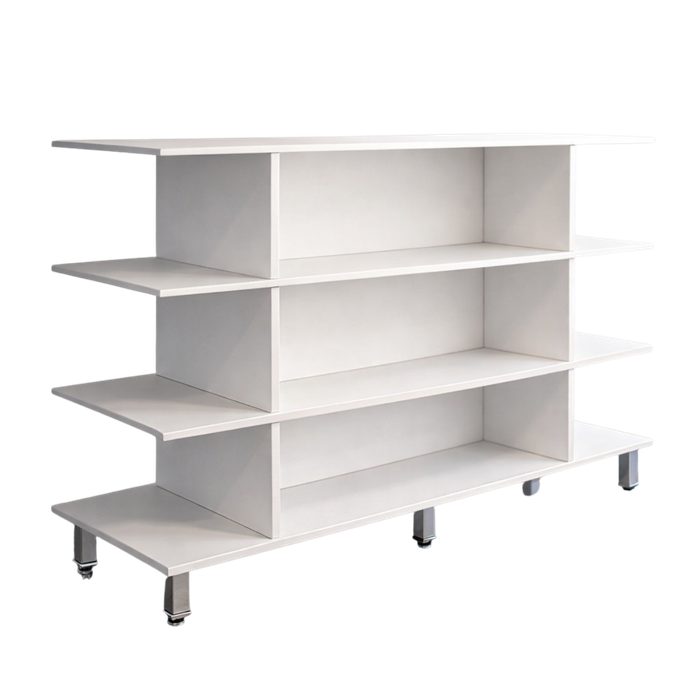 Pensada para o centro da loja, esta gôndola cria uma ilha de exposição que aumenta a visibilidade dos produtos e melhora a organização do ponto de venda.
