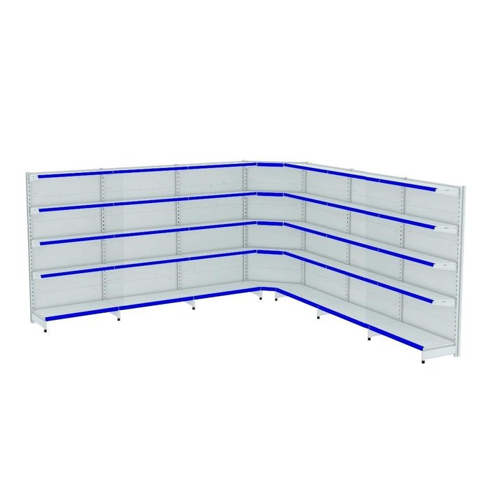 GONDOLA PAREDE 202 AMAPÁ FIT KIT 6 METROS COM 1 CANTO 40/30 BRANCO PORTA ETIQUETA AZUL