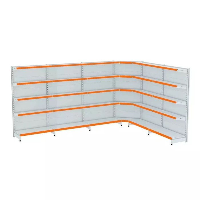 GONDOLA PAREDE 202 FIT AMAPÁ PARA VÃO DE ATÉ 5 METROS MAIS UM CANTO 40/30 BRANCO 30 BANDEJAS PORTA ETIQUETA LARANJAA fileira de Gôndolas deve ser iniciada com a Gôndola Inicial que possui 2 colunas. A Gôndola Continuação possui 1 coluna, utilizada para dar continuidade à fileira e não pode ser montada individualmente.A Gôndola Fit 40 é ideal para supermercados, mercearias, lojas de utilidades, materiais de construção, agropecuárias e outros.Prática e fácil de montar, com sistema de encaixe sem utilização de parafusos, inclinação da bandeja em 3 posições, possui bandejas reguláveis na coluna a cada 25 mm, o que permite adição de bandejas extras. Sistema de reforço que permite maior capacidade de carga. Possui travador de parede, item obrigatório para uma instalação com segurança.Produtos Amapá possuem qualidade, resistência e durabilidade garantidas pelo uso de matérias-primas de alto padrão. A pintura dos produtos é feita por meio da técnica eletrostática e com tratamento anticorrosão, deixando uniforme e resistente.ESPECIFICAÇÕES:30 bandejasInclinação da bandeja em 3 posiçõesCapacidade por bandeja: 40 Kg distribuídoA bandeja base com profundidade de 40 cm e as demais 30 cmPorta etiqueta nivelado com a bandejaReforço na base da bandejaCOMPOSIÇÃO:2 Gôndola Fit Inicial Parede3 Gôndola Fit Continuação Parede1 Canto FitDIMENSÕES (AxLxP):Altura: 202,0 cmLargura: 5,3 mProfundidade: 40,0 cmGarantia: 6 meses, sendo 90 dias período legal e 90 dias estendida pelo fabricante.DÚVIDAS FREQUENTES:Qual a finalidade dessa gôndola e indicação? Posso aumentar o número de bandejas?Resposta: Facilitar a exposição de produtos, recomendado para farmácia, supermercados, mercearias, lojas de utilidades, materiais de construção, agropecuárias e outros. Sim pode aumentar o número de bandejas (opcional) e assim diminuir o espaço entre uma bandeja e outra, aproveitando melhor o espaço.Qual o material?Resposta: Chapa de aço.Qual a resistência das bandejas?Resposta: A linha Fit 40 tem reforço ômega e permite adicionar até 40 kg por bandeja desde que seja distribuído.