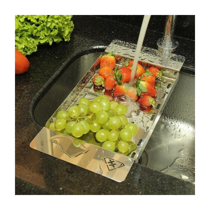 Grade para a Cuba da Pia desenvolvida pela Maxx Diamond é muito prática, pois a água dos alimentos cai dentro da cuba e é ideal para secar frutas, legumes e verduras além de descongelar carnes e outros alimentos, pode ainda ser utilizado como escorredor para utensílios domésticos.