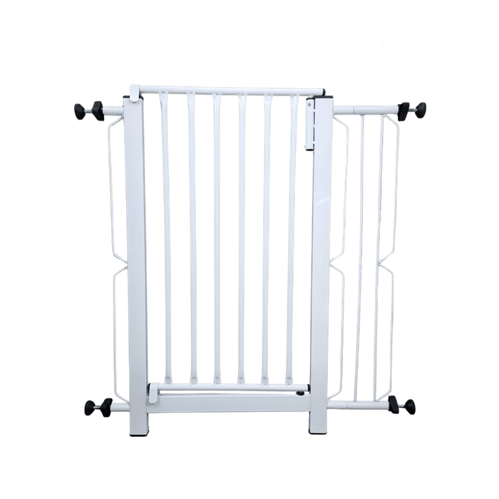 Proteja crianças e pets com instalação em 5 min ? sem furar a parede. Portão de Segurança Grade Master, faixa de vão 76 a 80 cm, aço carbono com pintura epóxi.